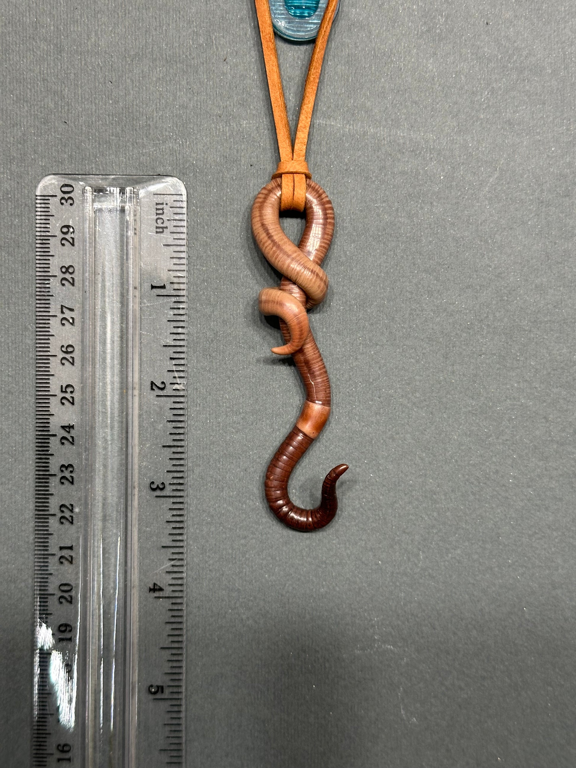My worm pendants are all completely hand-made. They are hand-textured, posed individually, ETC. Each one is a completely unique sculpture. The finish on them is polymer as well. I do not use resins, paints, or varnishes to make these.