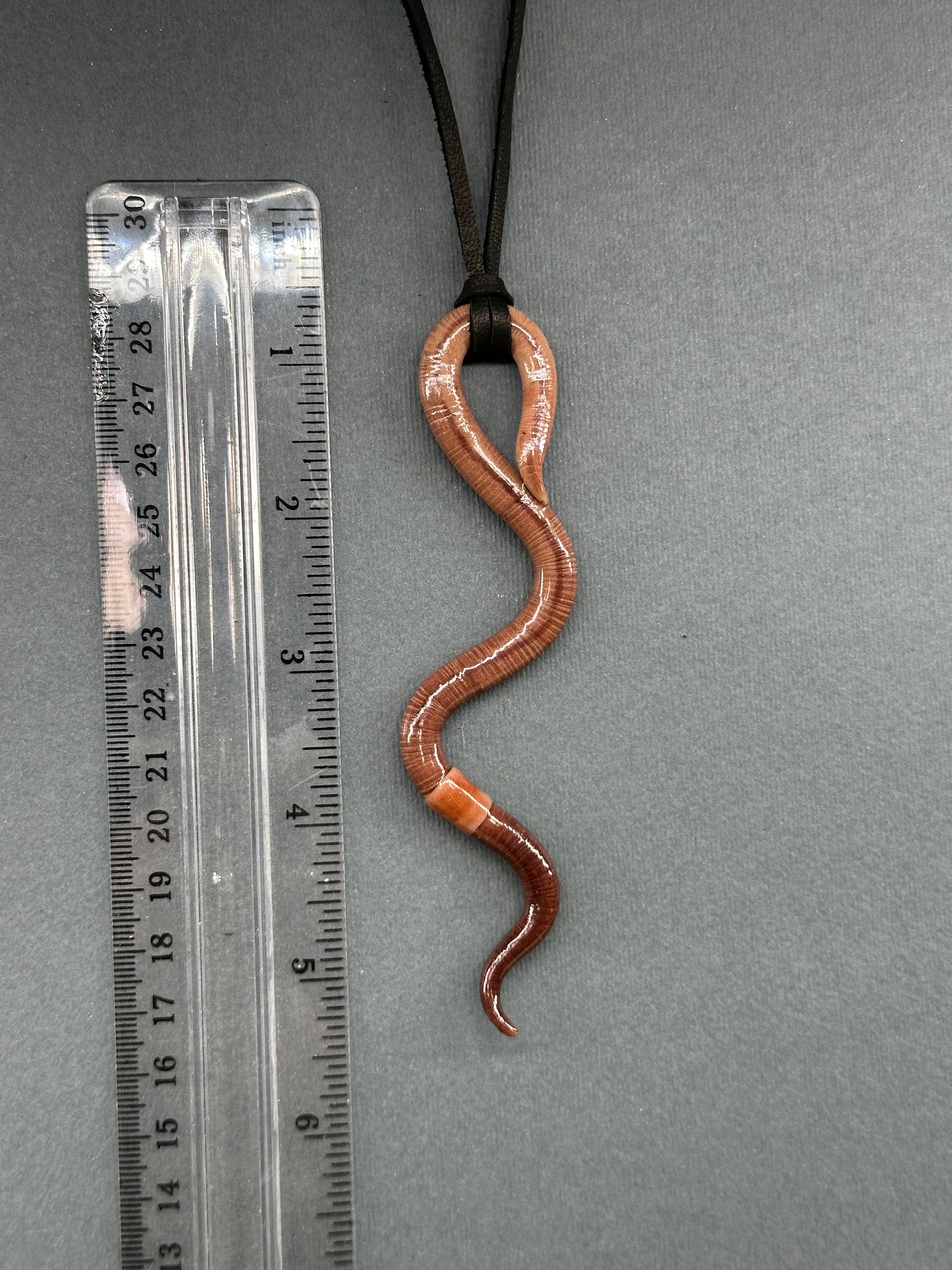 My worm pendants are all completely hand-made. They are hand-textured, posed individually, ETC. Each one is a completely unique sculpture. The finish on them is polymer as well. I do not use resins, paints, or varnishes to make these.